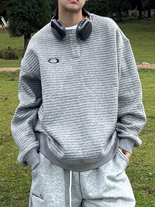ワンポイント ヘンリーネックストライプ スウェット